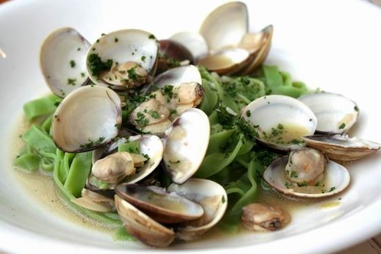 蛤蠣蒜香菠菜寬麵