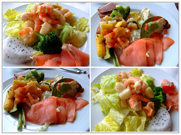凱撤沙拉+地中海甜蝦+干貝+火龍果+燻鮭魚+綠花椰----第二次組合