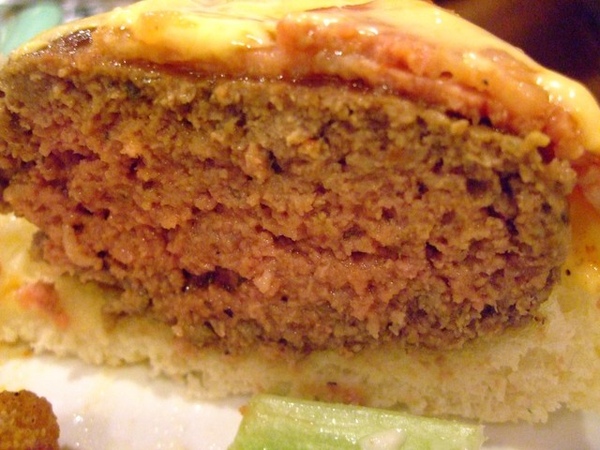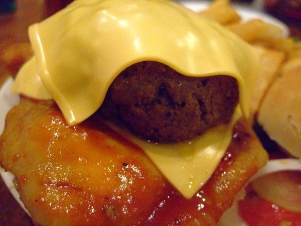 一份漢堡能夠品嚐到兩種口味,有牛肉與雞肉兩種的餡料