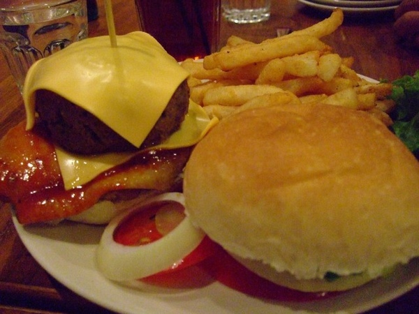 我(中牛)跟莎莎隊長(大牛)二人合吃人氣餐點-「牛肉起士漢堡」
