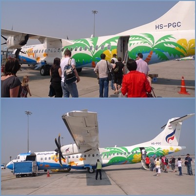 曼谷航空的飛機剛好是ATR-72,螺旋槳飛機,超級可愛的啦